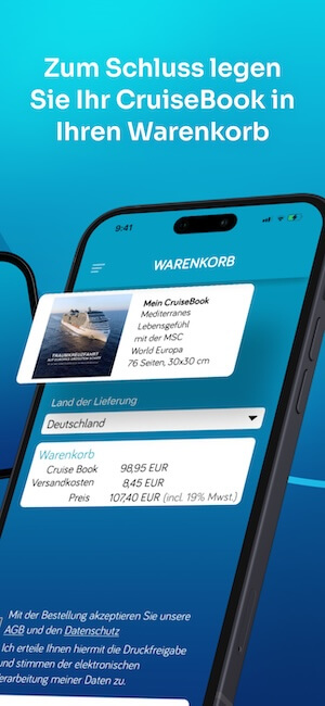 Zum Schluss legen Sie Ihr CruiseBook in den Warenkorb. Halten Sie Ihre Karte, die Sie per Post erhalten haben, bereit.